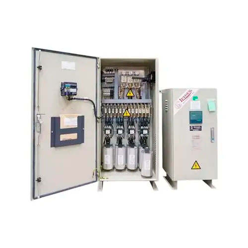 Comandados por un regulador automático LEYDEN de 6 o 12 pasos totalmente electrónico y con indicadores luminosos, comandado por microprocesador programable.